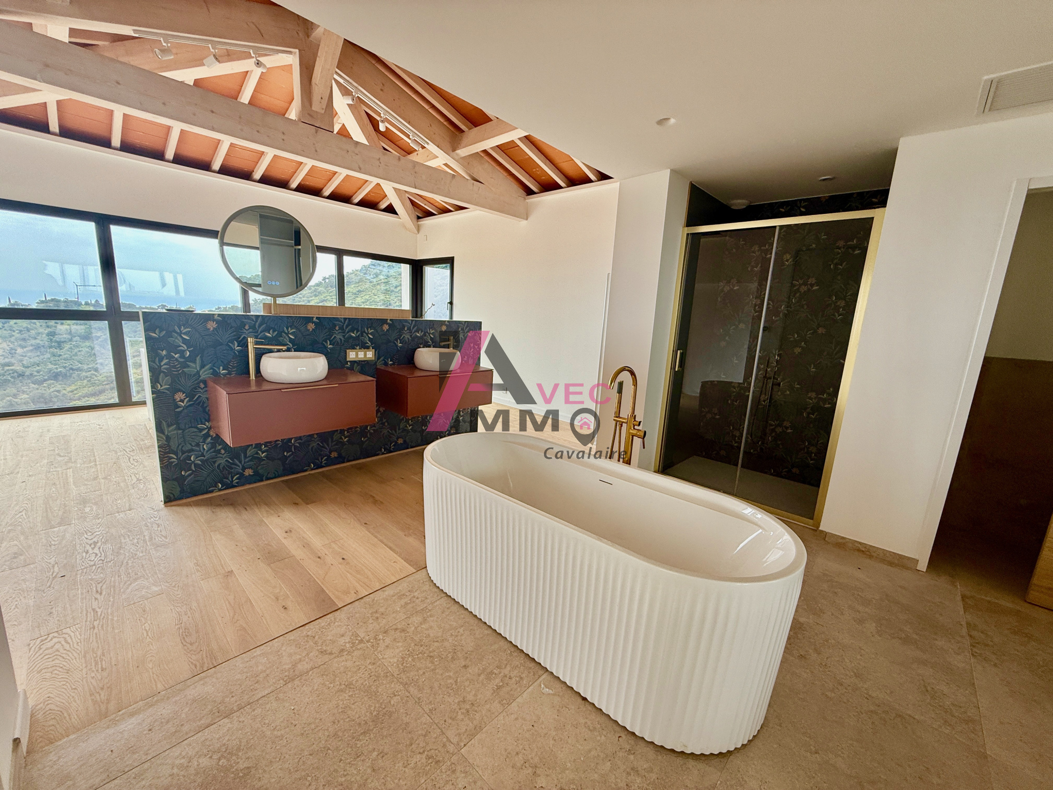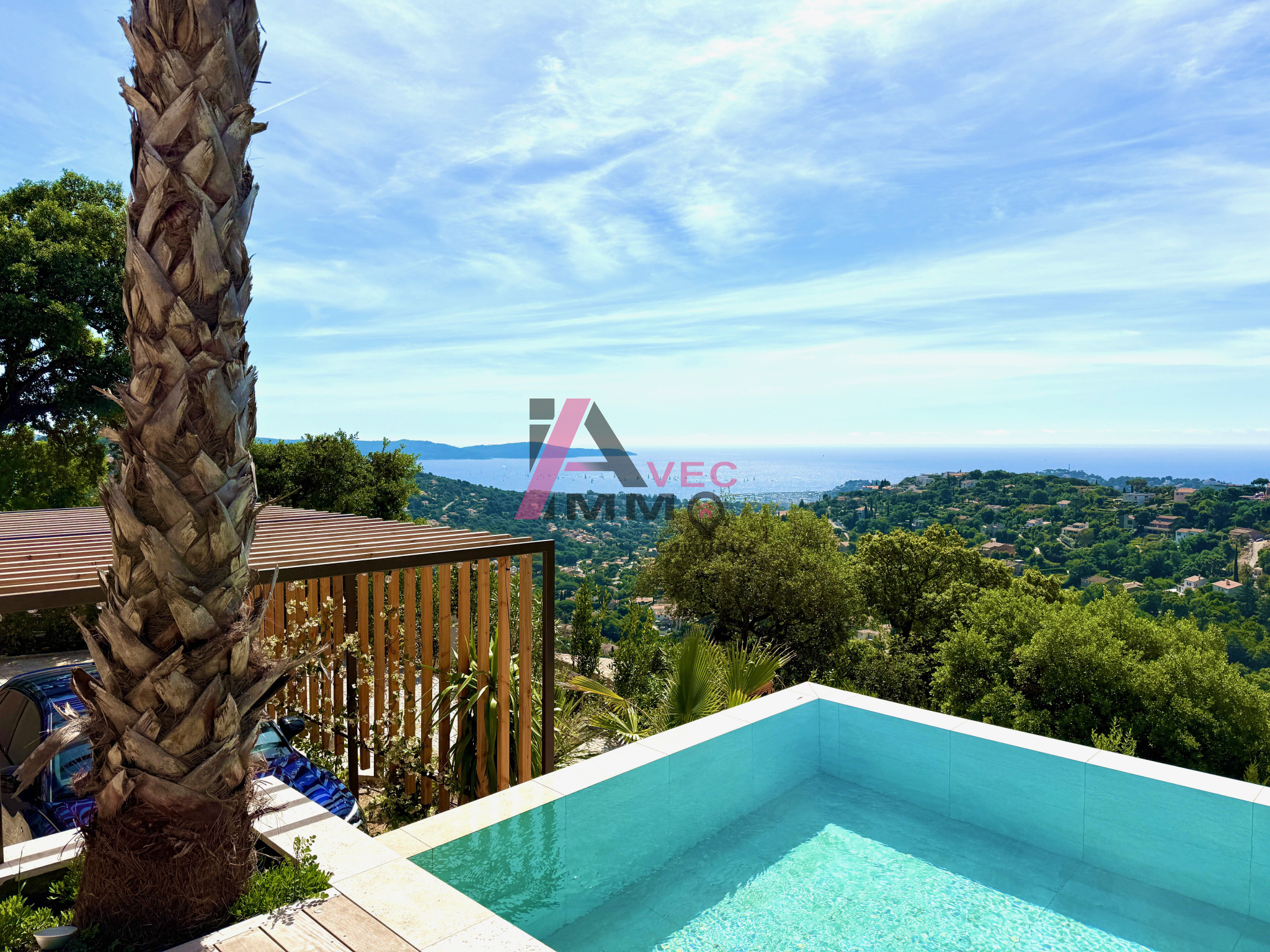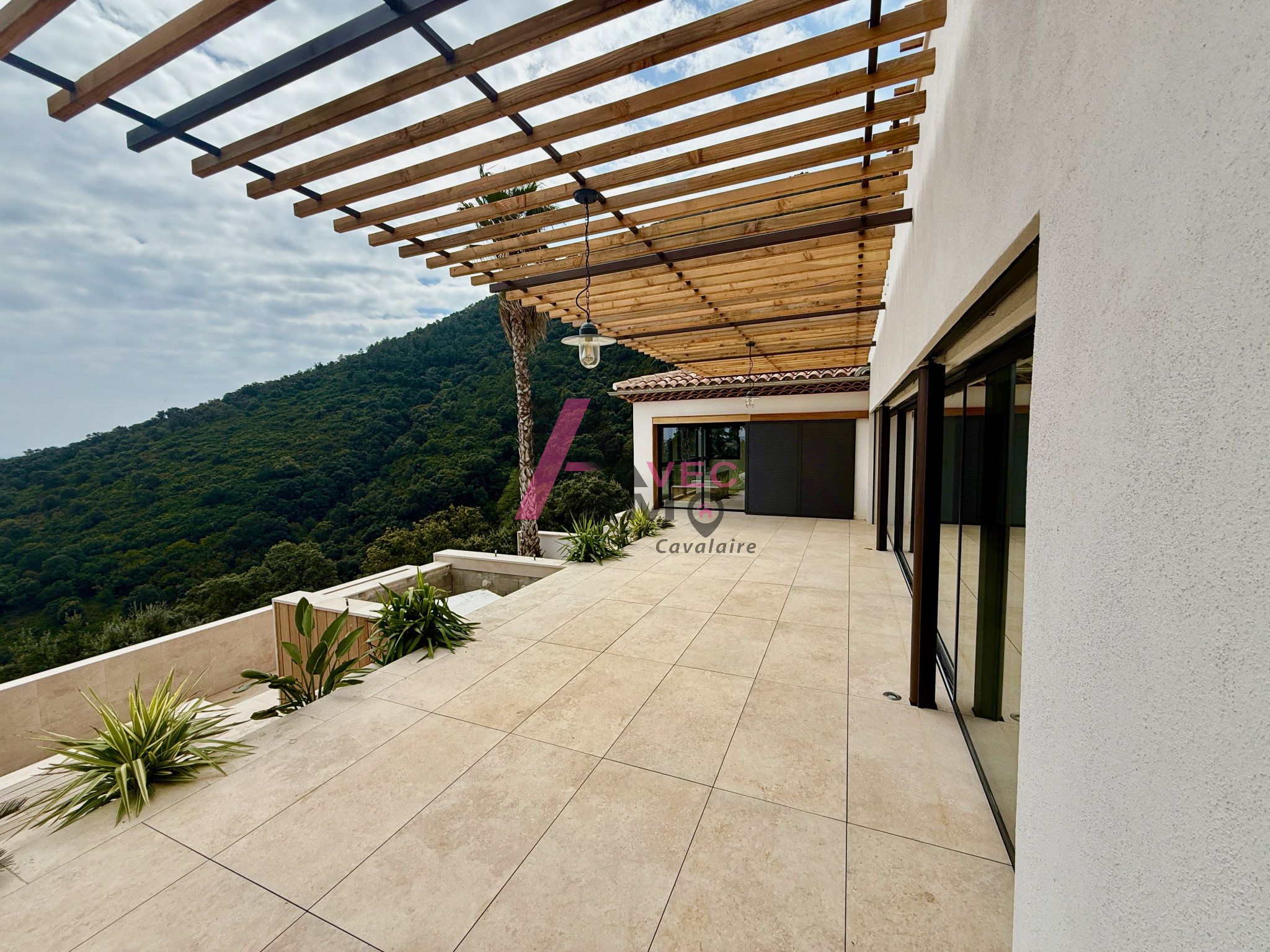 Propriété prestigieuse avec vue mer panoramique. Magnifique pièce de vie avec salon, salle à manger, cuisine totalisant 100M2, une chambre Master avec dressing, douche et baignoire, 4 chambres en suite et un studio indépendant. Secteur privilégié au calme absolu sur les hauteurs de Cavalaire dans un domaine recherché. Prestations hors normes pour cette réalisation de grand standing. Belles terrasses, piscine à débordement, jacuzzi, cuisine d'extérieur, cave à vin vitrée, garage, buanderie, carport...